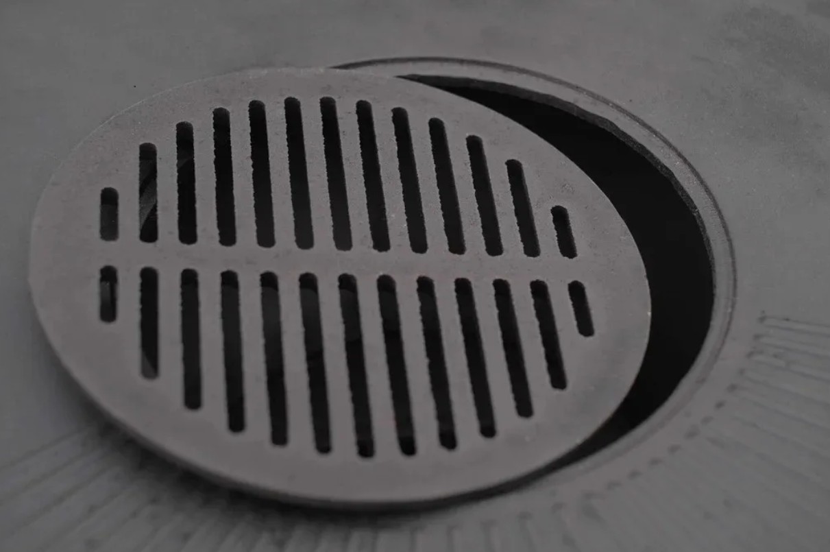 Гриль-очаг очень прост в использовании: дрова закладываются в центр очага, на решетке гриль можно готовить сразу после закладки дров, а на жарочной поверхности через 20-25 минут. Жарочная поверхность имеет диаметр 790 мм и сконструирована таким образом, чтобы излишки масла сами стекали в огонь и не попадали наружу.