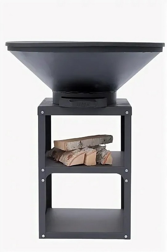Гриль сделан из толстого чугуна, покрыт краской.  На нижнюю полку удобно положить дрова. Есть разные варианты приготовления пищи, возможно приготовить на гриле или в котелке.