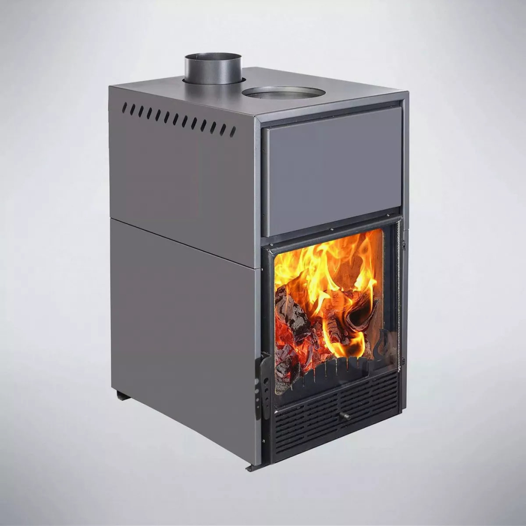 В верхней части топочной камеры дровяной печи-камина находится варочная панель для приготовления пищи, оборудованная двумя съёмными дисками.