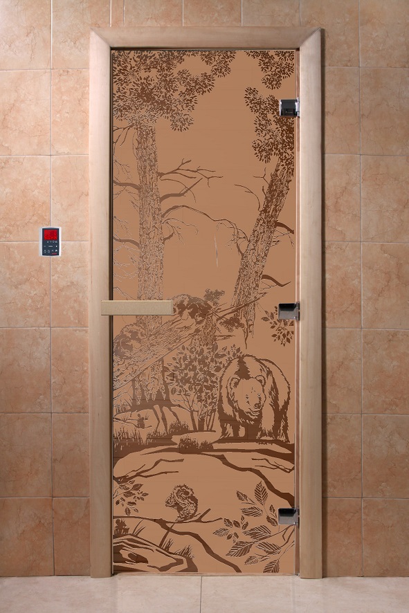 Дверь для сауны "Мишки в лесу" (матовая) 190х70 в Перми | Доставка по России